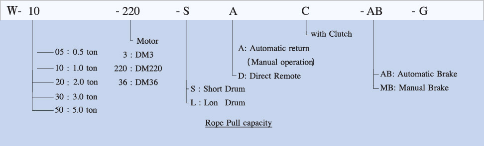 | Model | Drum Size (mm) | Rope Anchor hole Dia.(mm). | ||