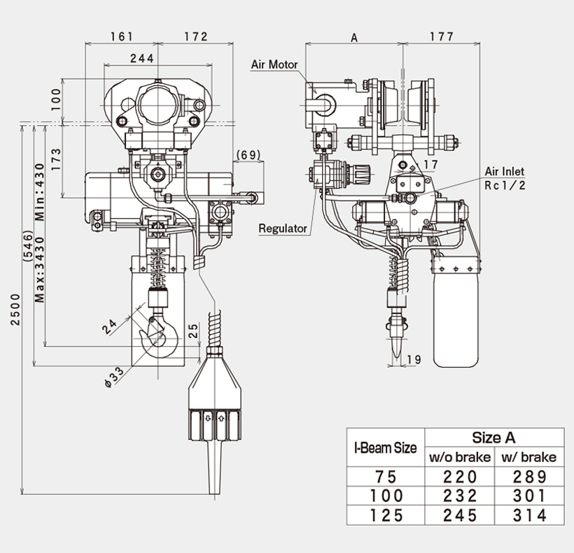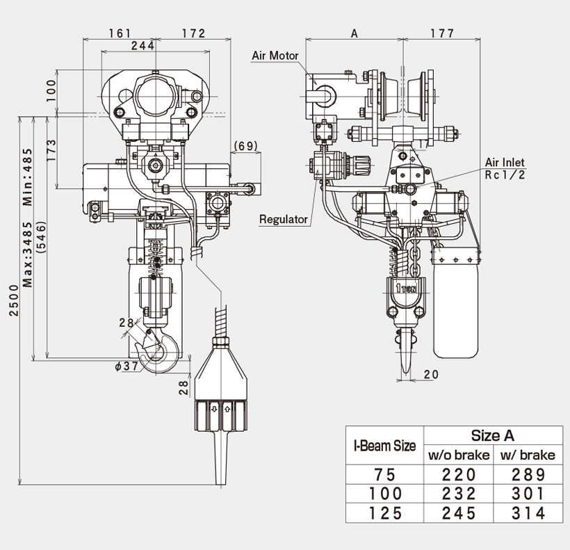 Pendant Switch | Plain Trolley | Geared Trolley | Air Motor Trolley | Model | Weight (kg) |